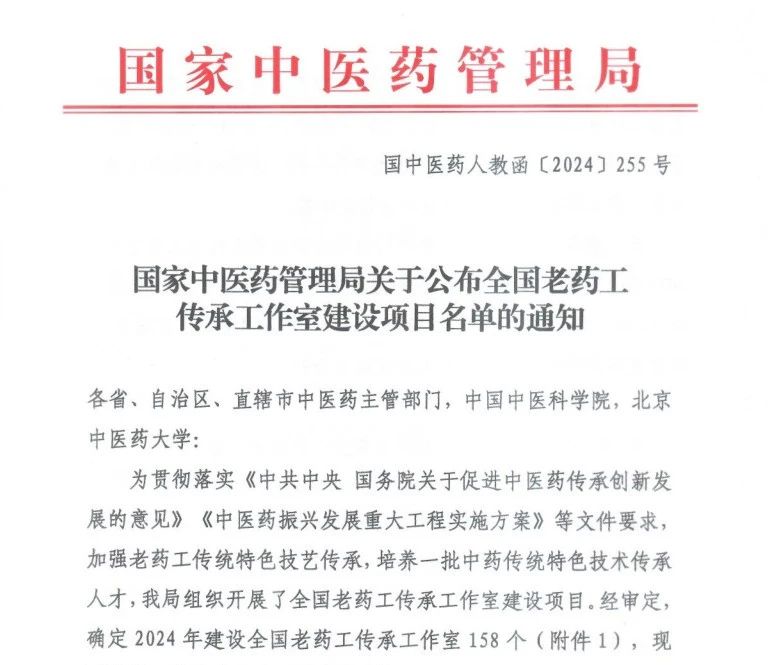 发布时间:2024-12-0712月4日国家中医药管理局印发《关于公布全国老药工传承工作室建设项目名单的通知》确定在全国建设老药工传承工作室158个安徽8个其中,亳州2个成功入选